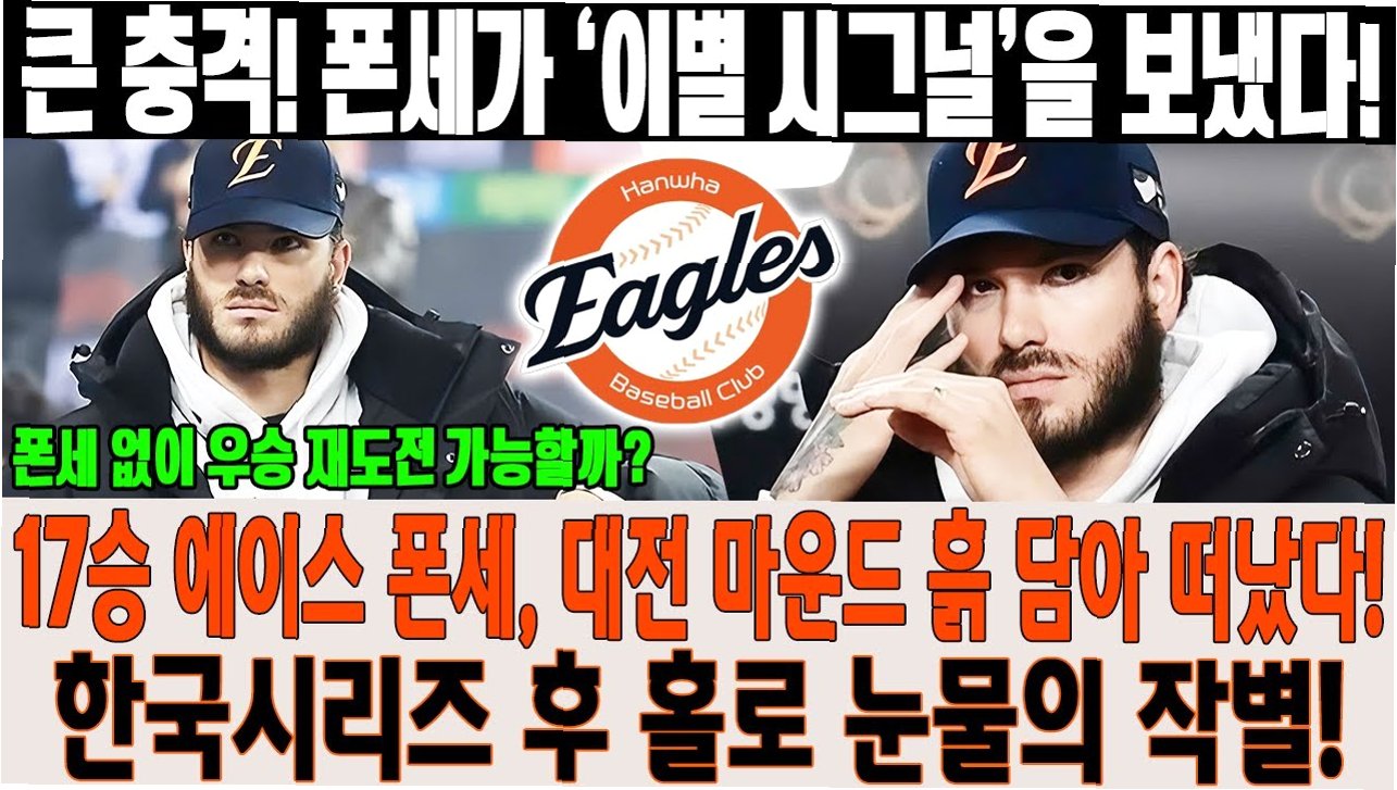 LG의 통합 우승을 지켜보며 침묵에 잠긴 한화 더그아웃, 그 속에서 폰세는 마지막까지 그라운드를 응시했습니다. 밝은 미소 대신 아쉬움과 침울함이 가득한 표정으로, 그는 대전 마운드의 흙을 주워 담아 떠났습니다. 마치 이별을 예감한 듯한 모습은, 팬들에게 깊은 여운을 남겼습니다.