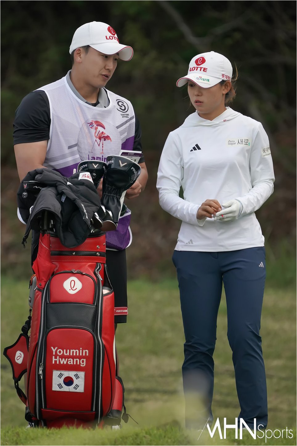 ‘캐디’ 이율린은 전날 연습 라운드부터 황유민과 함께하며 만반의 준비를 마쳤다. 캐디는 이번이 처음인 그는 “평소 야디지북에 한 글자도 안 적는 스타일인데 어제 18홀을 돌면서 정말 빼곡하게 메모로 야디지북을 채웠다. 이 코스는 오르막도 많고 바람도 많이 불어서 거리 계산을 잘해야 될 것 같다”며 “일단 첫날은 매치플레이라 최대한 마음 편하게 해주면서 유민이랑 재밌게 해보겠다”고 했다.